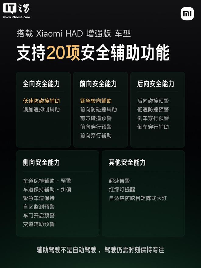 据IT之家此前报道,在 11 月 21 日 2025 广州车展开幕日当天,小米汽车端到端辅助驾驶“Xiaomi HAD 增强版”正式发布,其在 1000 万 Clips 版本的基础上引入了「强化学习」与「世界模型」,同时 AEB 防碰撞辅助升级,并新增紧急转向辅助。