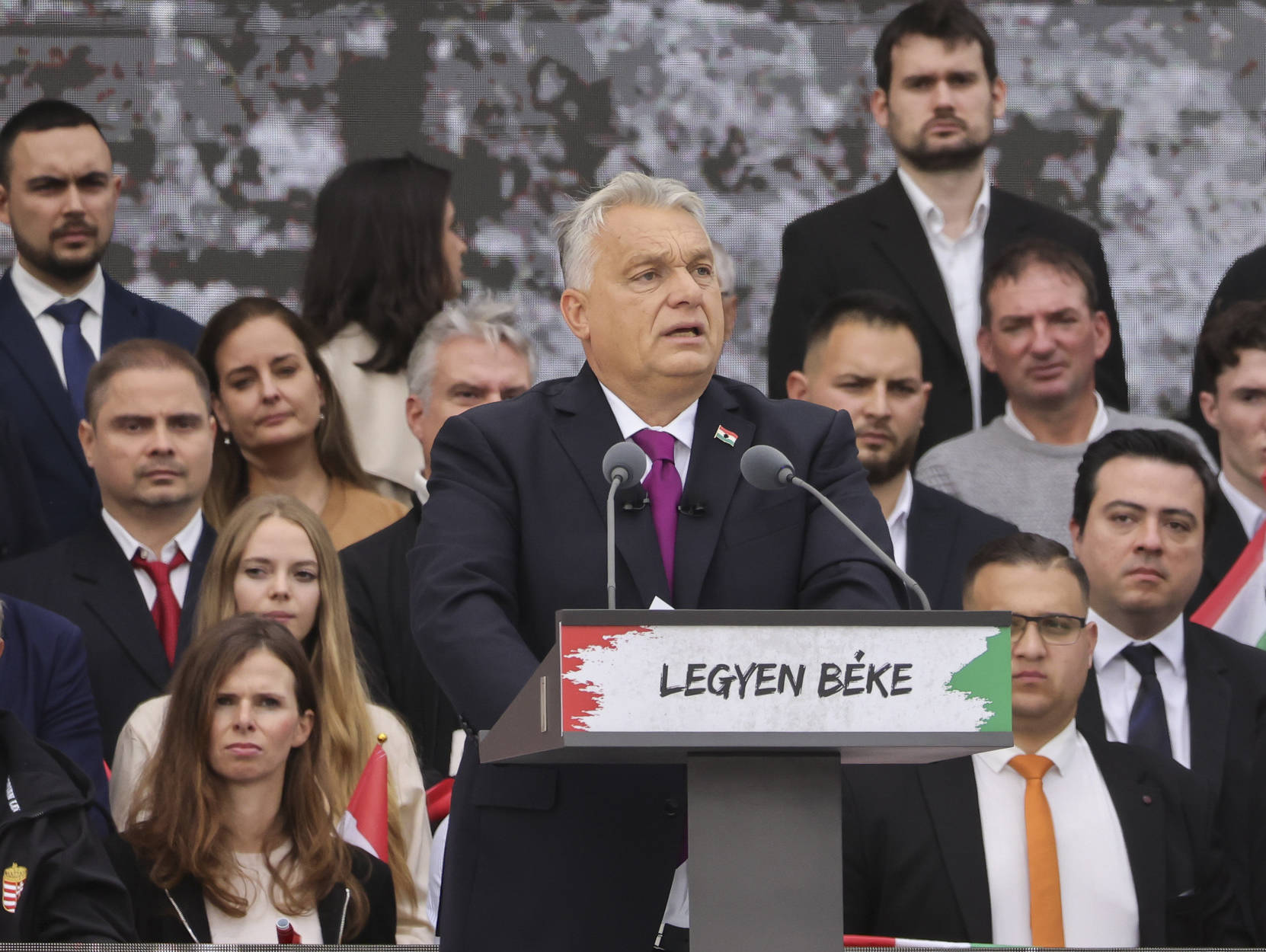 10月23日,匈牙利总理欧尔班在首都布达佩斯举行的一场集会上讲话。新华社发(弗尔季·奥蒂洛摄)匈牙利总理欧尔班13日直言,匈牙利也有国家储备存放在比利时,如果欧盟打算碰俄罗斯的这些资产,“那我们也不得不想想,它们(匈牙利的国家储备)是否存放在了正确的地方”。