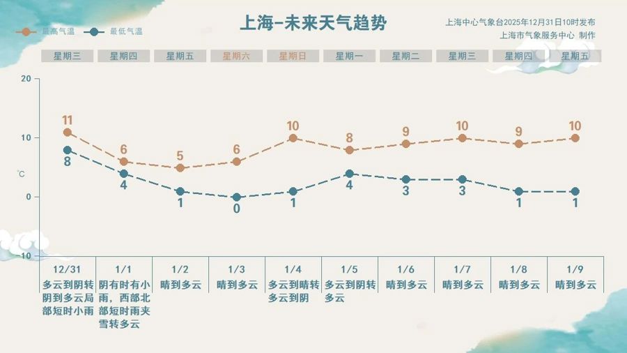 节后天气虽有回暖,但寒冷仍是主旋律。1月4日,新年第一个工作日以多云为主,早晨依然寒冷,白天最高气温可回升至10℃左右。此后,本市将维持一段以晴或多云为主的干冷天气,气温大体在1℃-10℃之间徘徊。冬日氛围十足,防寒保暖与用火用电安全都不可松懈。